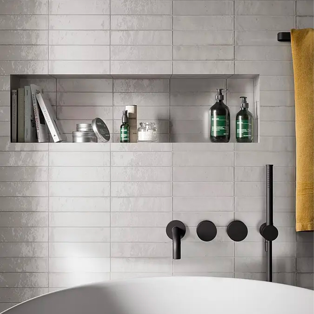 Farb- und Grafikvariationen erzeugen Lichtspiele, die den Raum in Schwingung versetzen. Lume führt ein neues Format ein, das 6x24, mit einer entschieden zeitgenössischen Ausstrahlung und hochglanzpolierten, unvollkommenen Oberflächen.